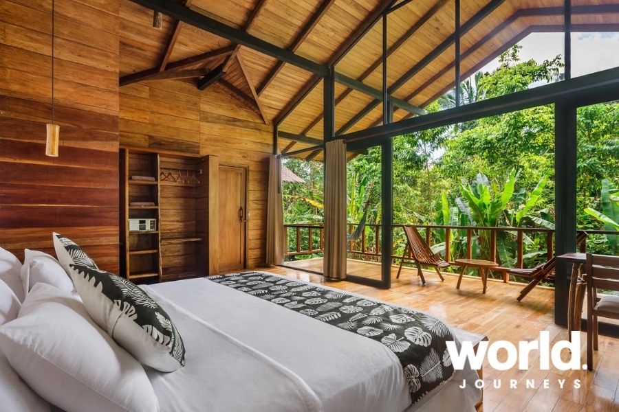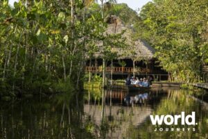 Ideal for families and individuals alike, the lodge offers specialist guided activities to view wildlife and flora including walking forest trails; treetop observation tower; the 275m long and 30m high Sacha Bird Walk; boating in dug-out canoes and visiting the parrot clay licks. At the lodge you can swim or fish in the beautiful lake to relax. Each of the 26 carefully designed cabins has high thatched roofs, private bathrooms, fans and hammocks on a private shade terrace. Meals are shared on the outdoor dining terrace and there is also an indoor bar with roof top viewing platform!