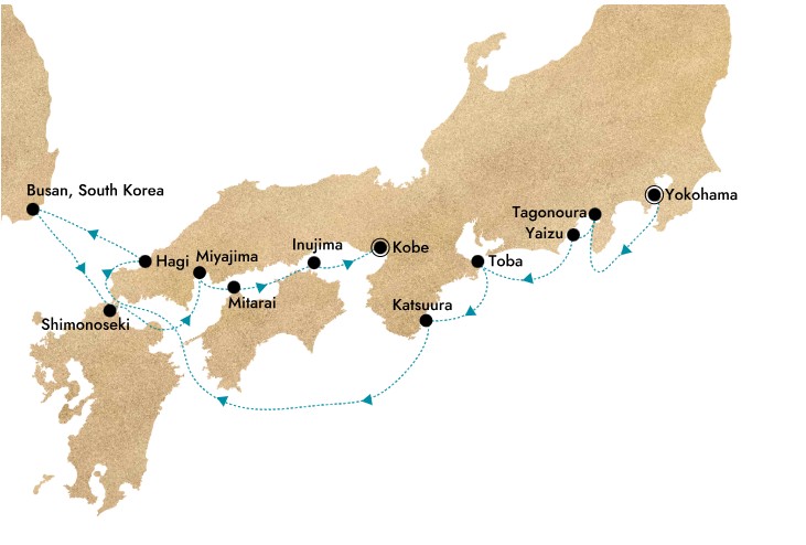 Discover bustling seafood markets and tranquil tea plantations, ancient Zen Buddhist shrines, and the stunning Setouchi Islands of the Seto Inland Sea. Stroll the Old Town streets of some of Japan’s UNESCO World Heritage Sites, and visit the vibrant port city of Busan for a taste of South Korea.