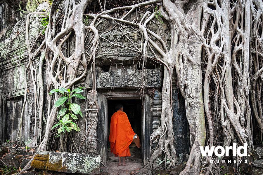 Depart early for Ta Prohm, where the magnificent tree roots have merged over the centuries with the temple’s huge stone blocks, and travel by tuk tuk through the forest to Banteay Kdei. In the afternoon, depart for Angkor Thom to visit its centrepiece, the Bayon Temple. Continue to the Terrace of the Elephants and Terrace of the Leper before heading to Angkor Wat, claimed to be the largest religious building in the world.