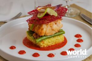 Each public area is designed to blend the indoor and outdoor seamlessly. The semi-covered Sky Deck includes a Jacuzzi, bar and sunbeds – perfect for relaxation and socialising with other guests. In the dining area you can enjoy freshly prepared meals inspired by Ecuadorian flavours. And for the moments when you’d like more shelter, the lounge inside with its 180 degree panoramic views awaits, along with a cosy salon and a fully stocked bar.
