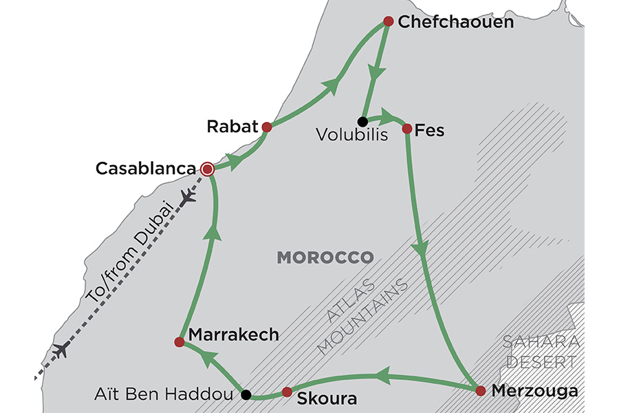 - Drive through the dramatic Atlas Mountains, followed by a journey through the Sahara desert