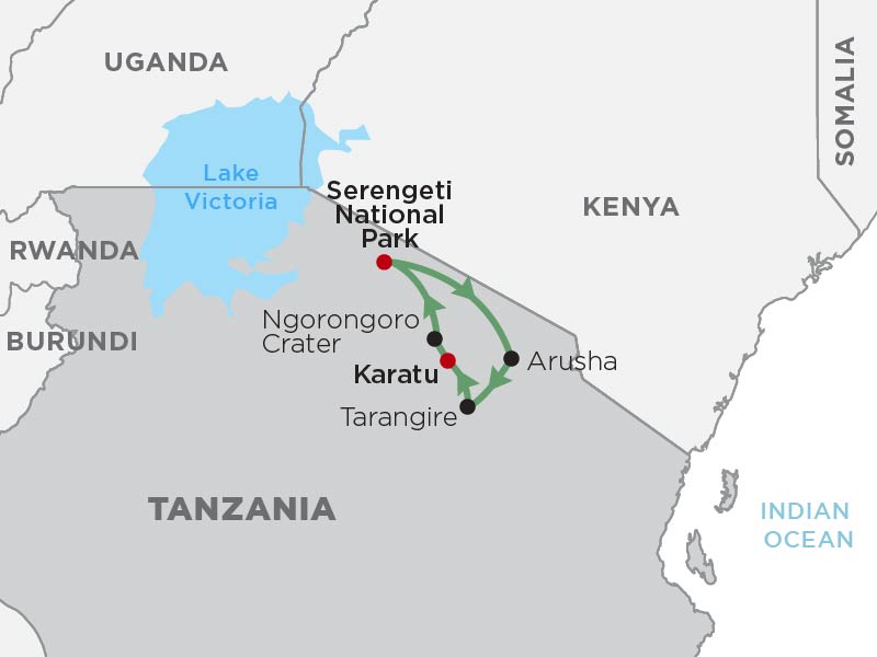 • Tarangire National Park • Ngorongoro Crater • Serengeti National Park